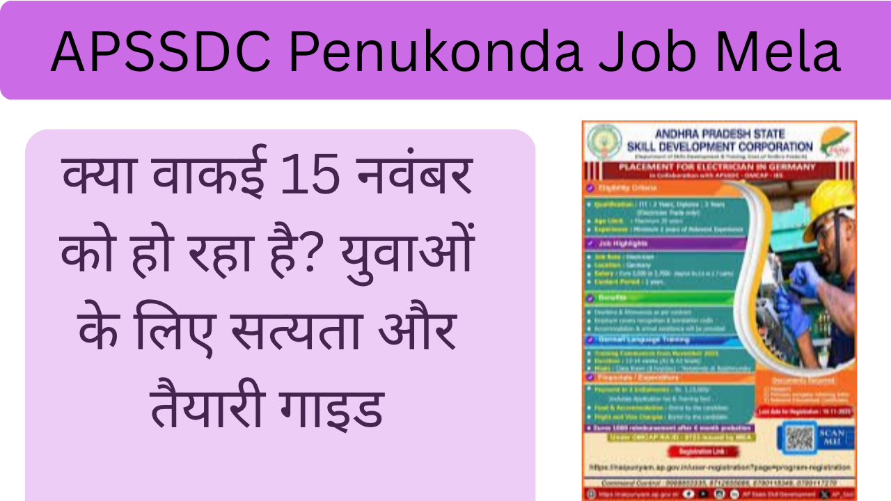 APSSDC Penukonda Job Mela: क्या वाकई 15 नवंबर को हो रहा है? युवाओं के लिए सत्यता और तैयारी गाइड